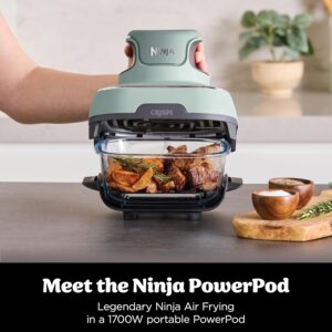 Ninja CRISPi Portable Air Fryer, 3.8L, 4-in-1: Air Fry, Roast, Keep Warm, Recrisp, Space Saving Compact Design, 2x Removable Glass Containers & Lids, 1700W, Sage FN101UKSG